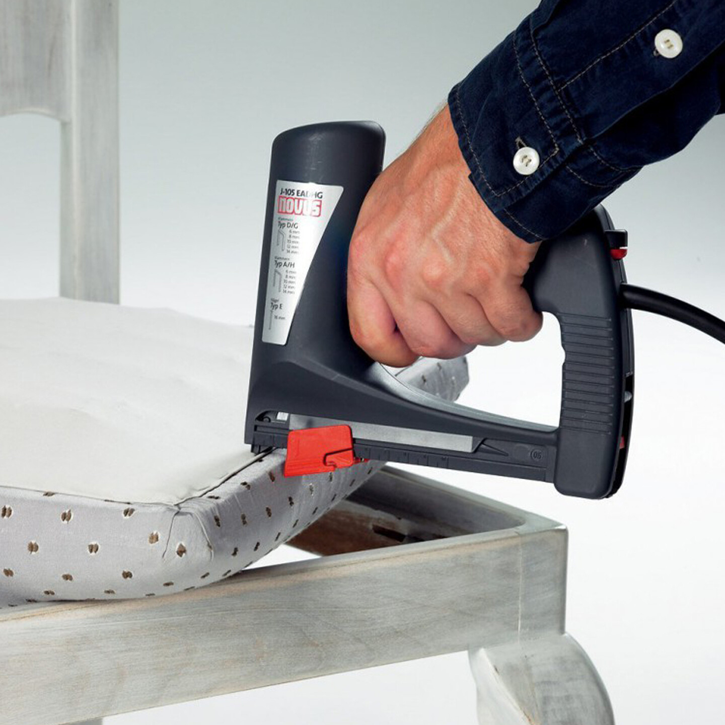 İç dekorasyon ve normal dekorasyon çalışmaları için olan elektronik çakma kuvveti ayarlı ve derinlik dayanaklı küçük üniversal döşeme tabancasıdır.