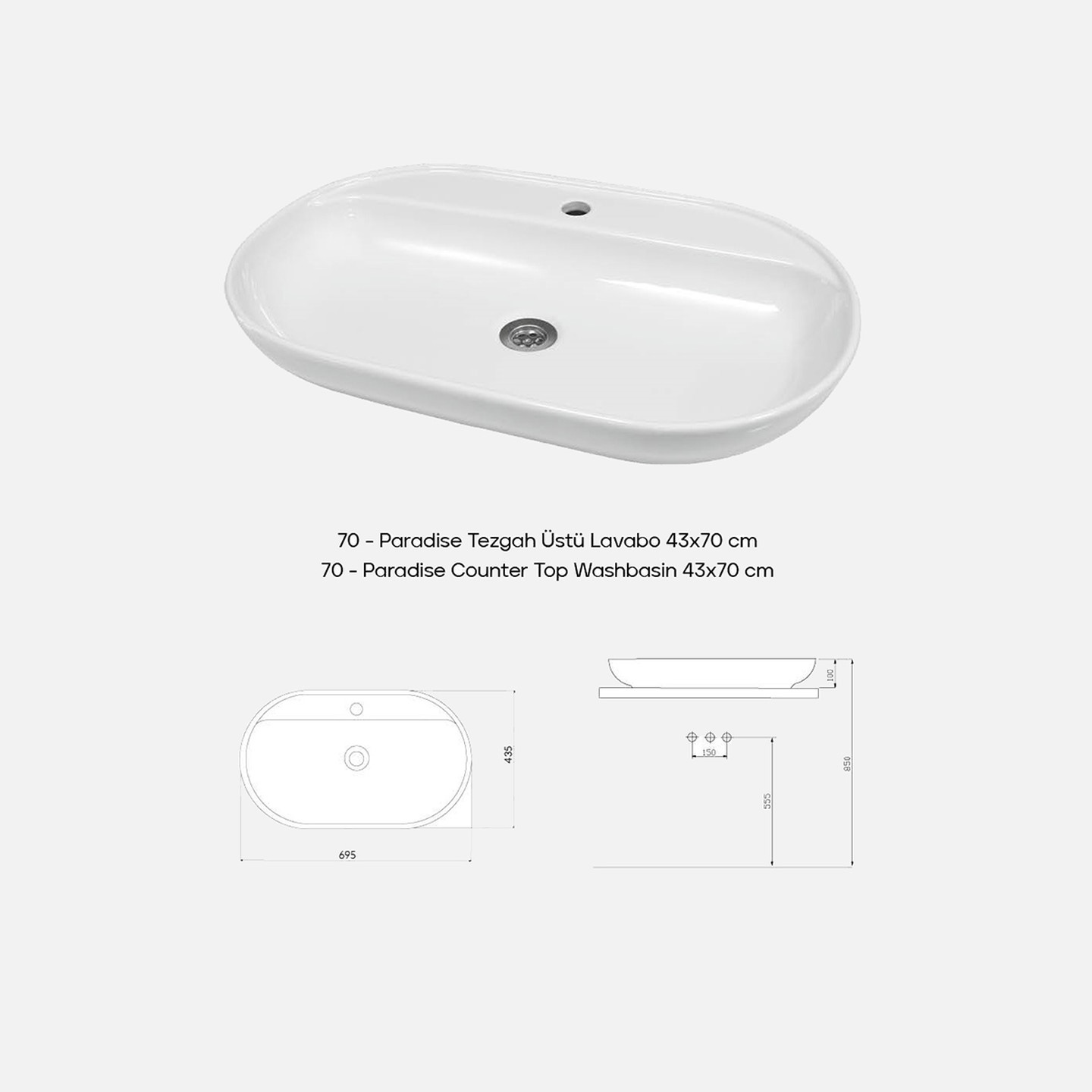 Paradise 70 cm Tezgah Üstü Lavabo