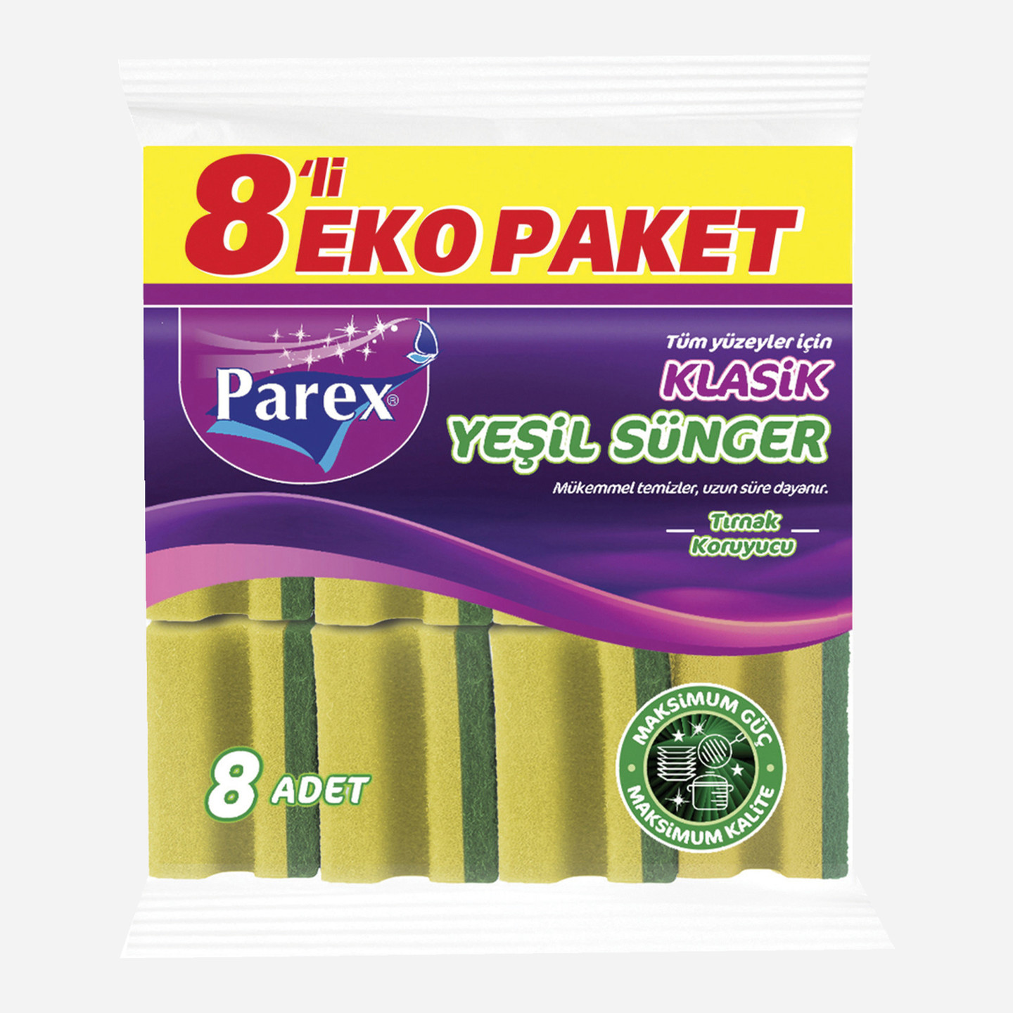 • Parex Yeşil Sünger dayanıklı dokusu ile zor kirleri ve lekeli yüzeyleri çabucak ovar ve temizler.