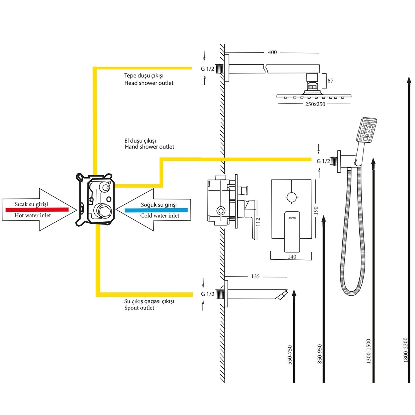 Penta Ankastre Banyo Duş Sistemi Bc895