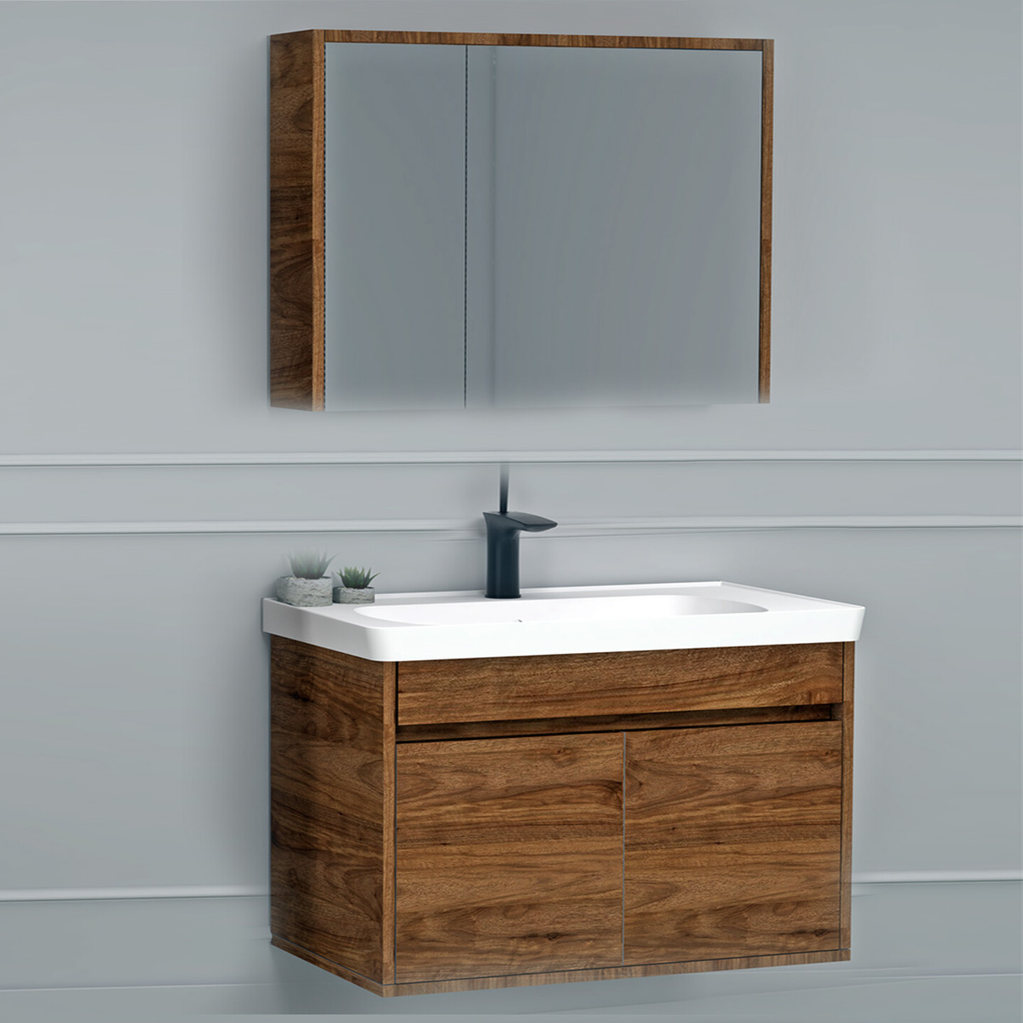 Polka Pedro Aynalı 80 cm Takım Banyo Dolabı Ceviz