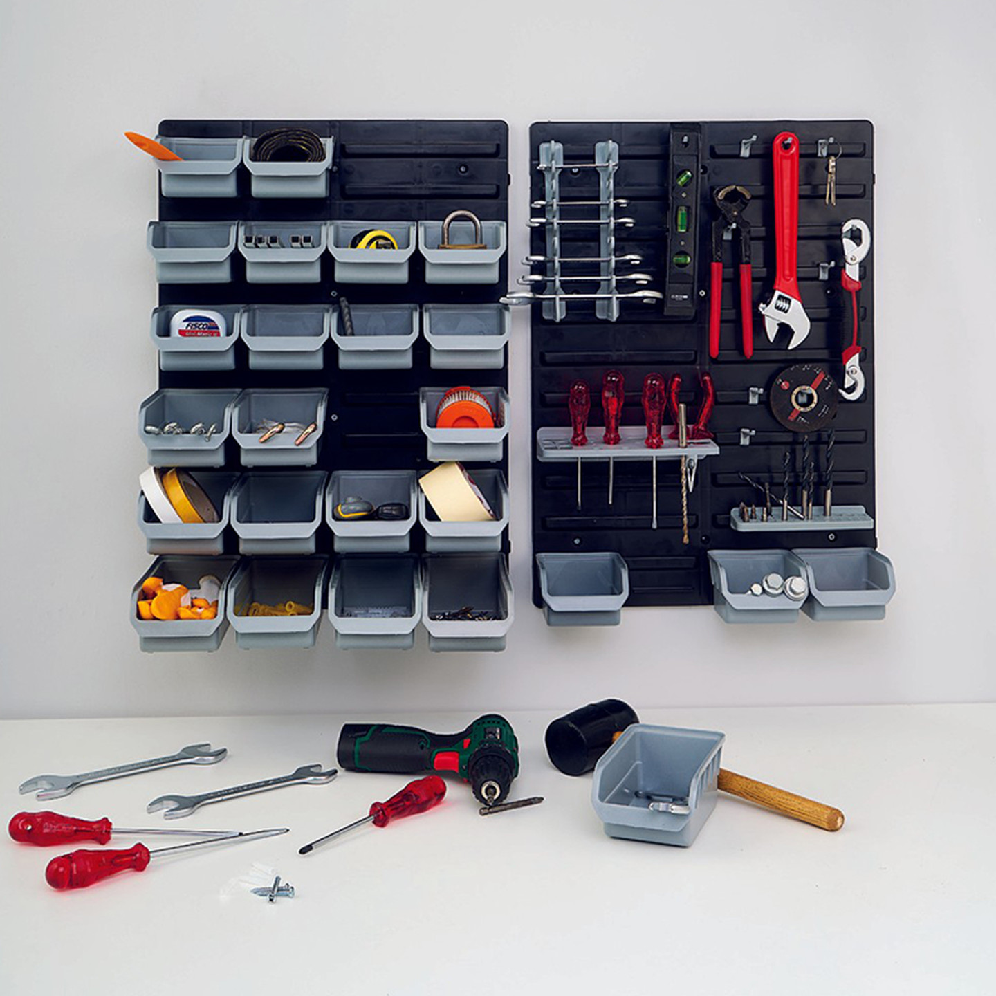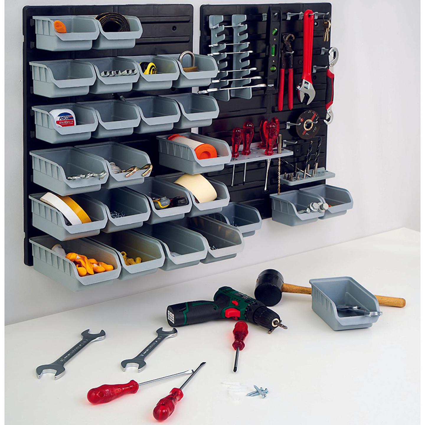 •Duvar Paneli ile tüm tamir malzemelerini pratik bir şekilde düzene sokabileceğiniz çok amaçlı bir settir.