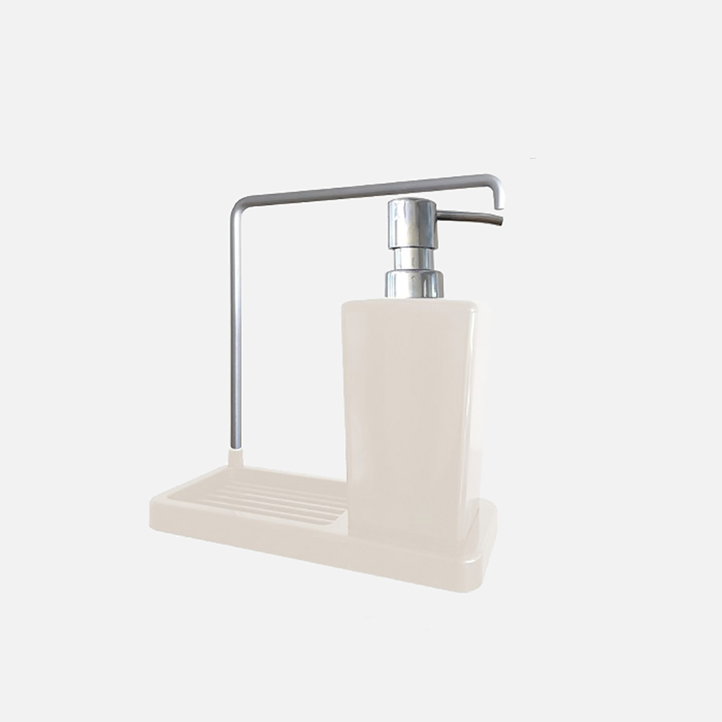 Primanova Luna Alüminyum - Plastik Pompalı Tezgah Üstü Bej Süngerlikli Sabunluk