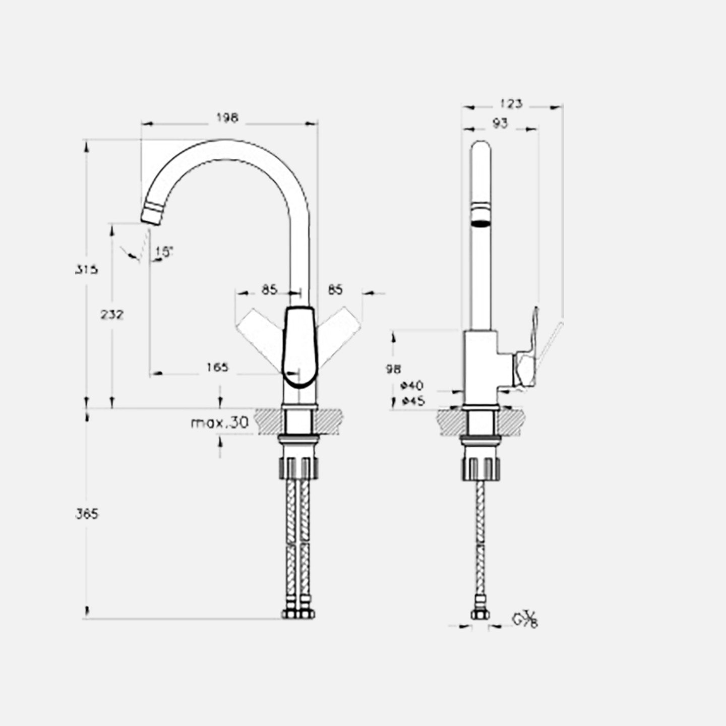 • Çıkış ucu yüksekliği 23,2 cm