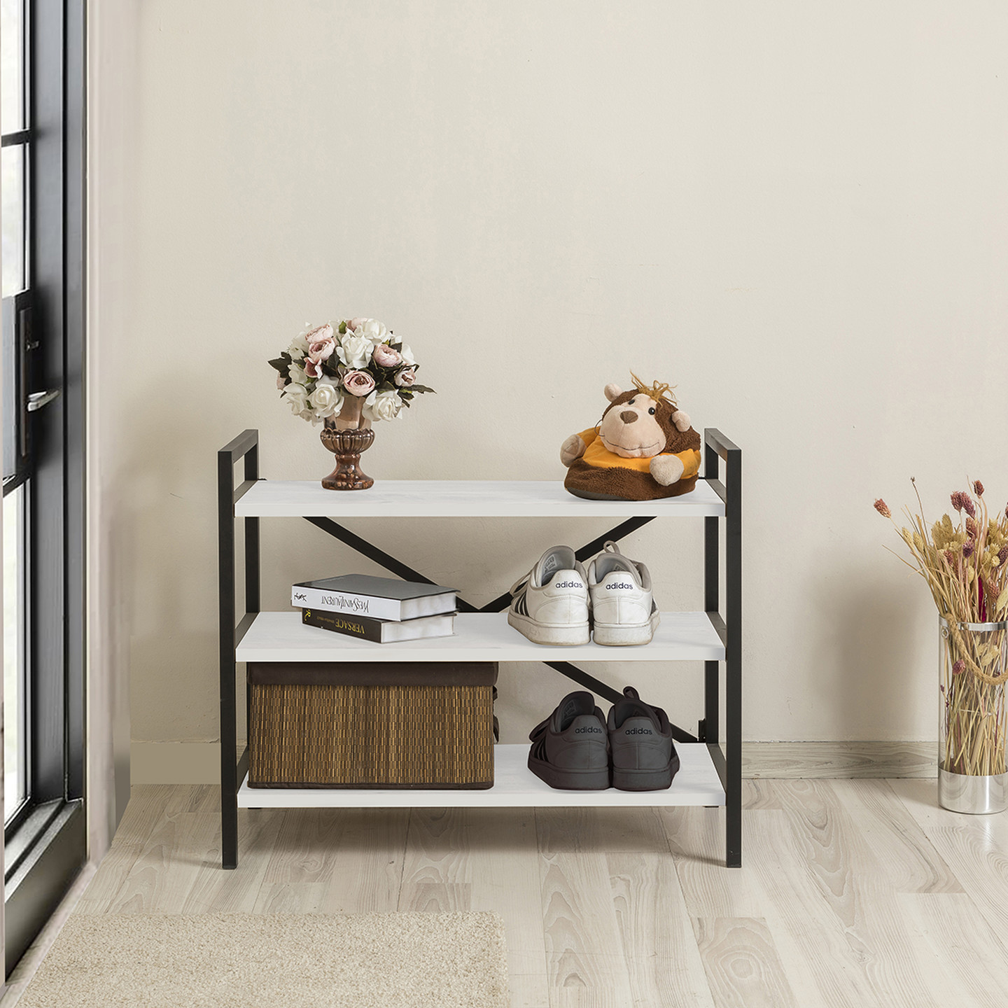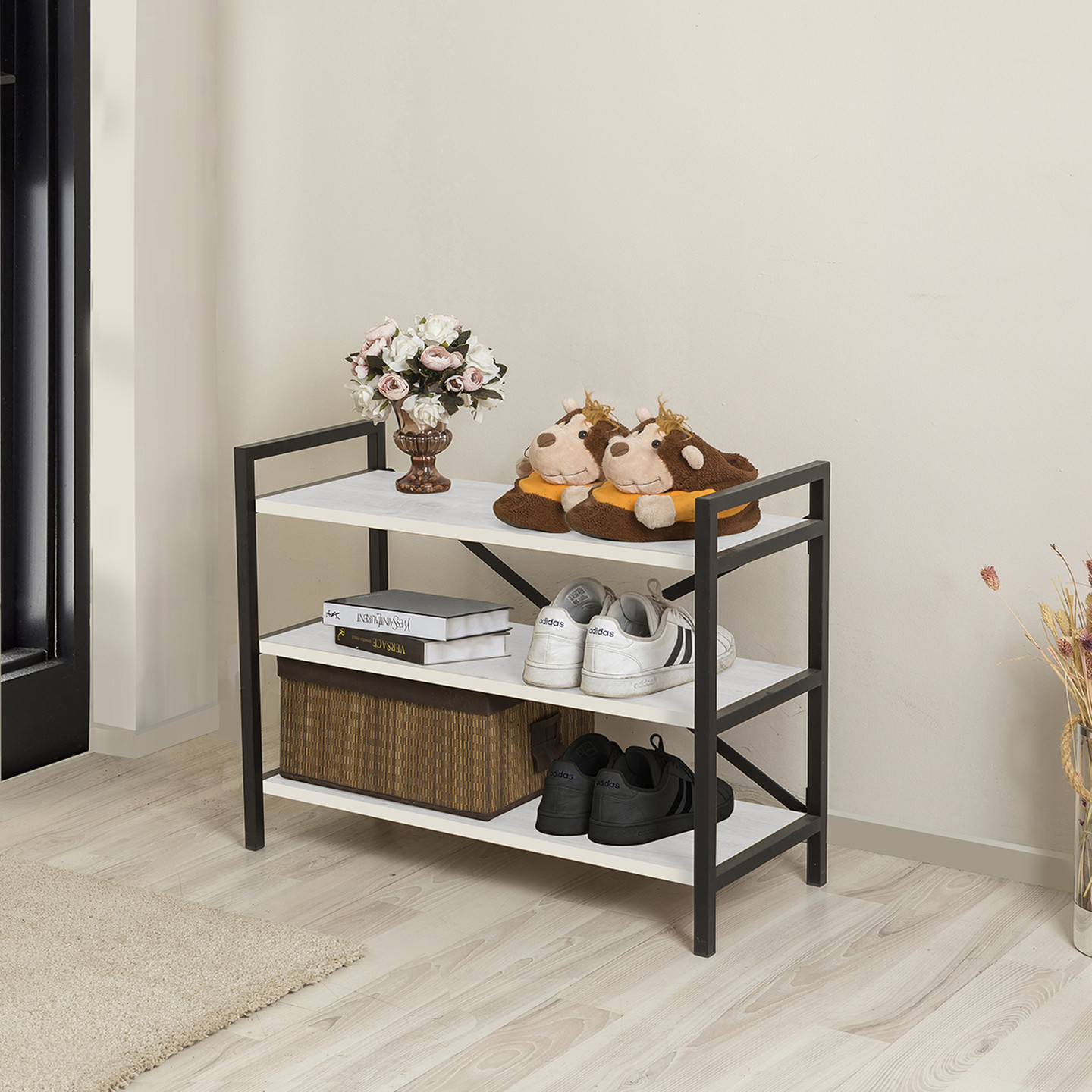 Quick Furni 3 Katlı Metal Ayaklı Ayakkabılık Beyaz