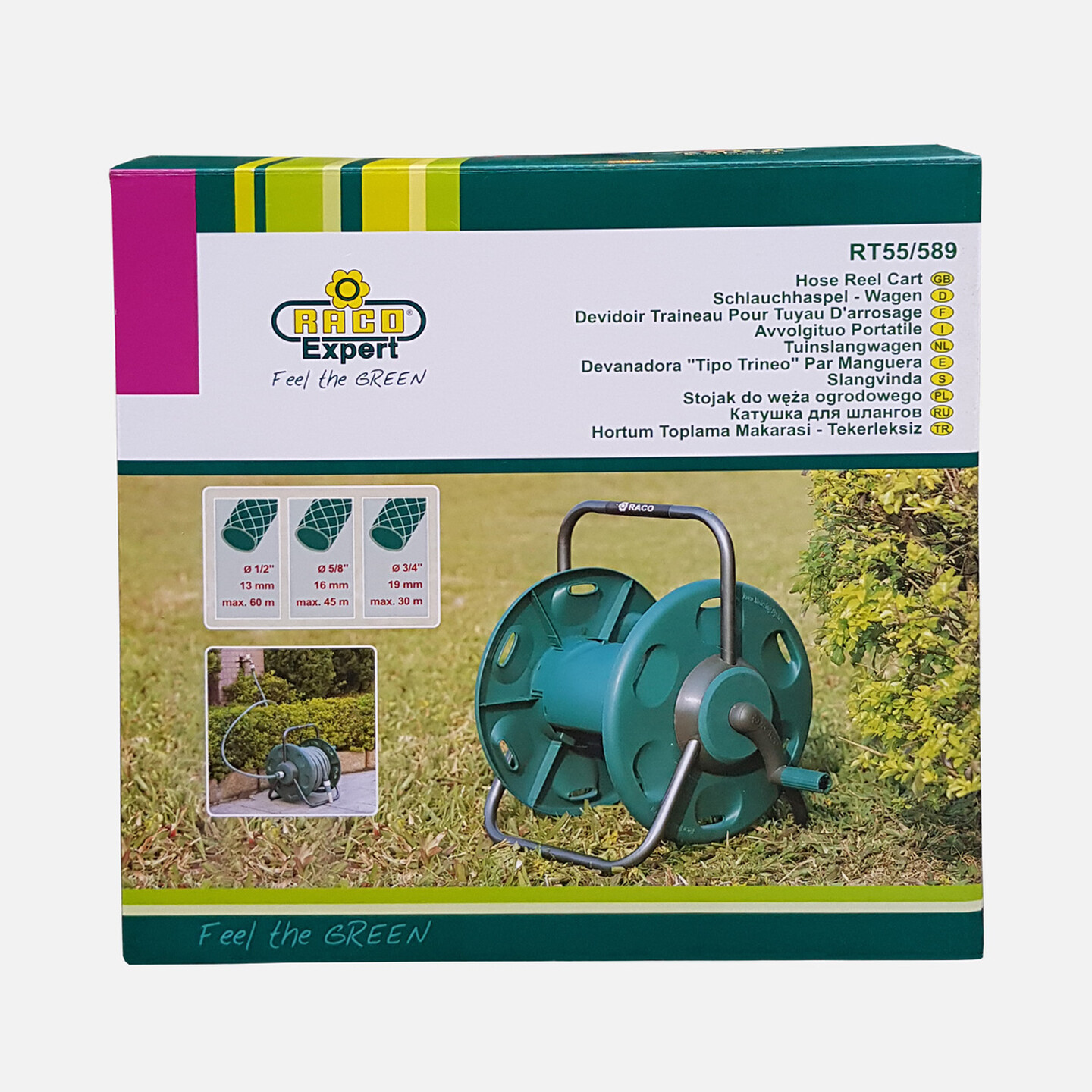 - 60 Mt. 1/2" veya 45 mt. 3/4" hortum sarılmasına uygundur.