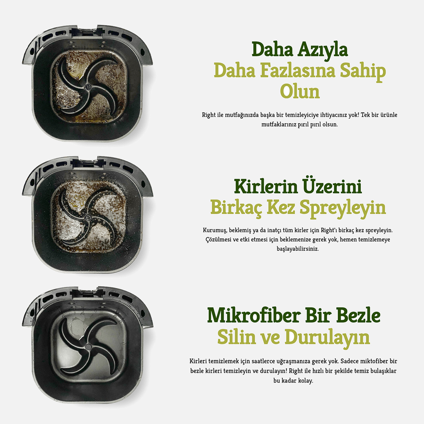 • Tek spreyleme ile hızlıca Right’ın etkin yağ sökme ve kir çıkarma gücü ve benzersiz formülü ile %30 daha az deterjan harcayarak daha temiz bulaşıklara ve temiz yüzeylere sahip olun!
