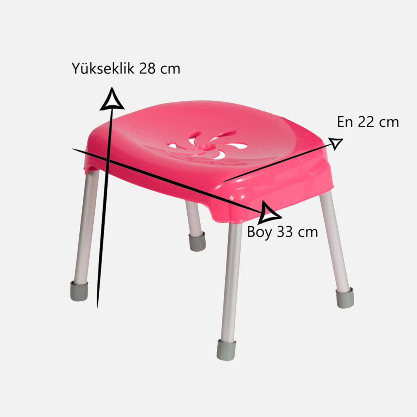 • Metal ayaklı ve renkli oturaklı banyo taburesidir.
