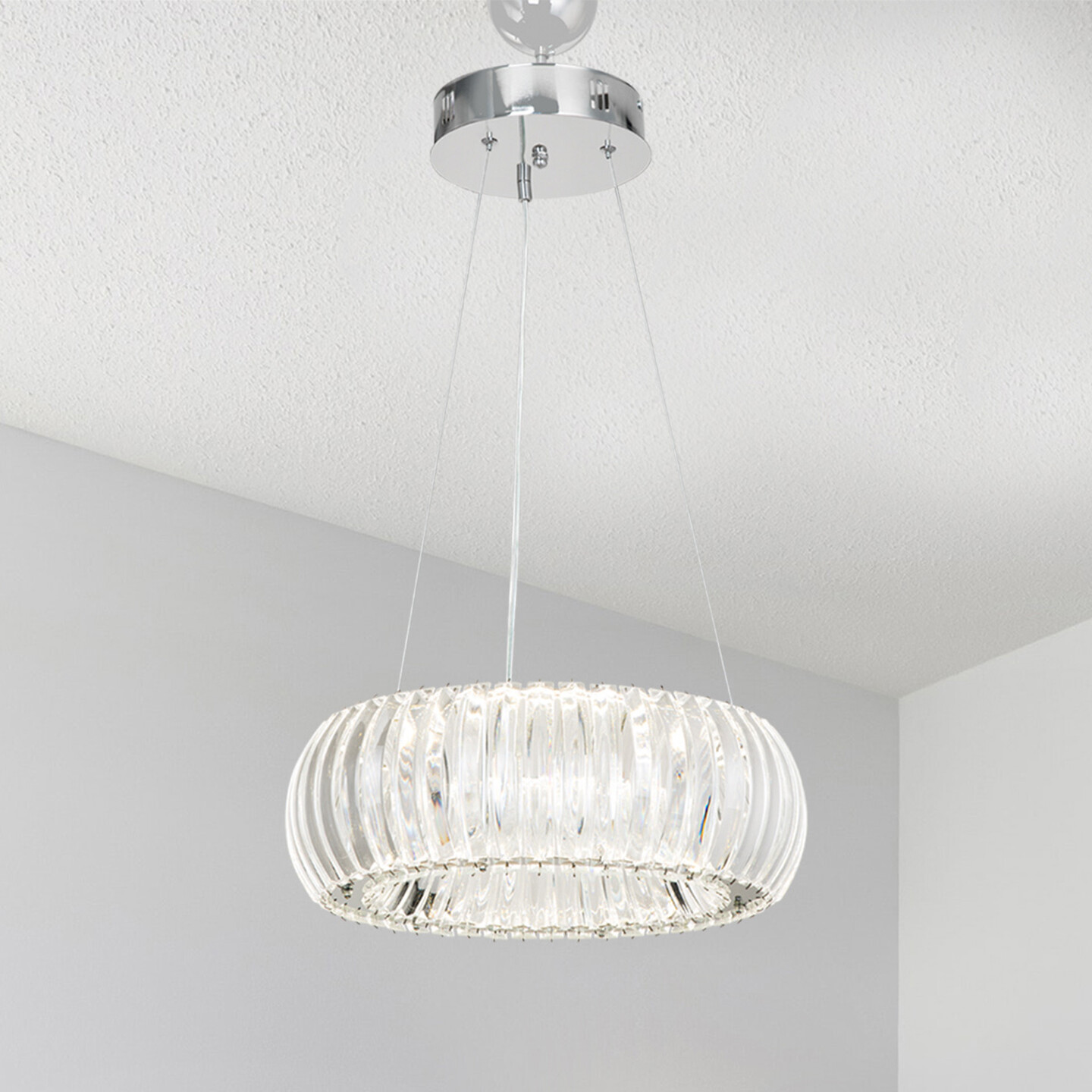 Sinera Krom Kristal Prizma Cam Kumandalı Tekli Sarkıt Avize