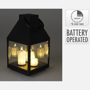 Siyah 3 Mumlu Dekoratif Işıklı Fener