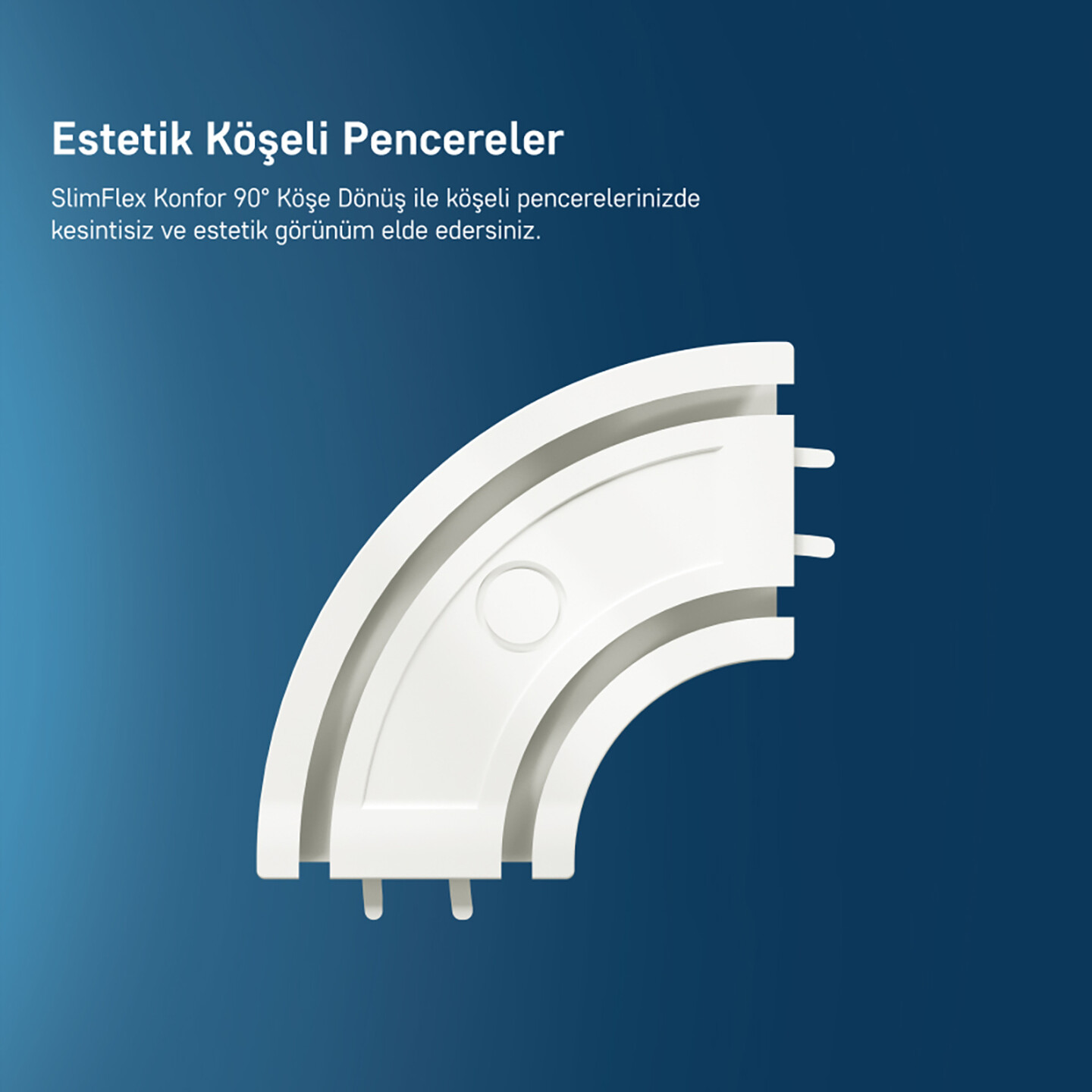 • SlimFlex Konfor 90° Köşe Dönüş ile köşeli pencerelerinizde kesintisiz ve estetik görünüm elde edersiniz.