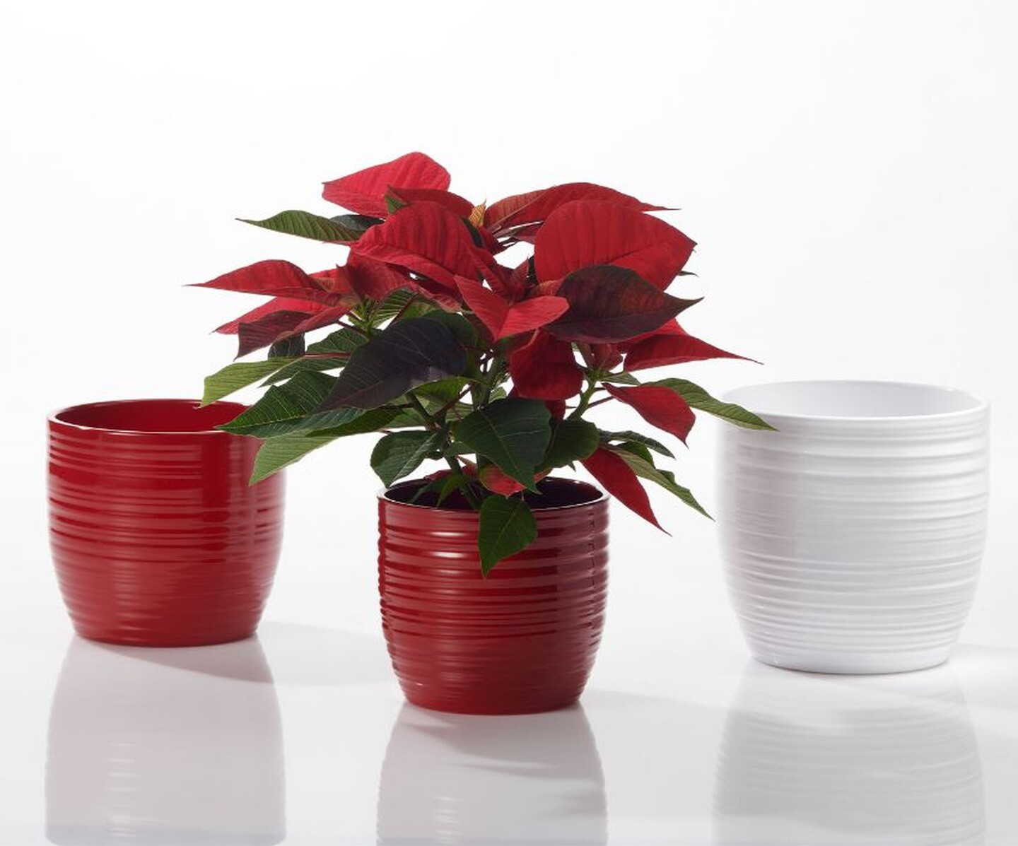 • Saksılar klasik Noel renkleri olan bordo ve parlak beyaz renklerinde mevcuttur.