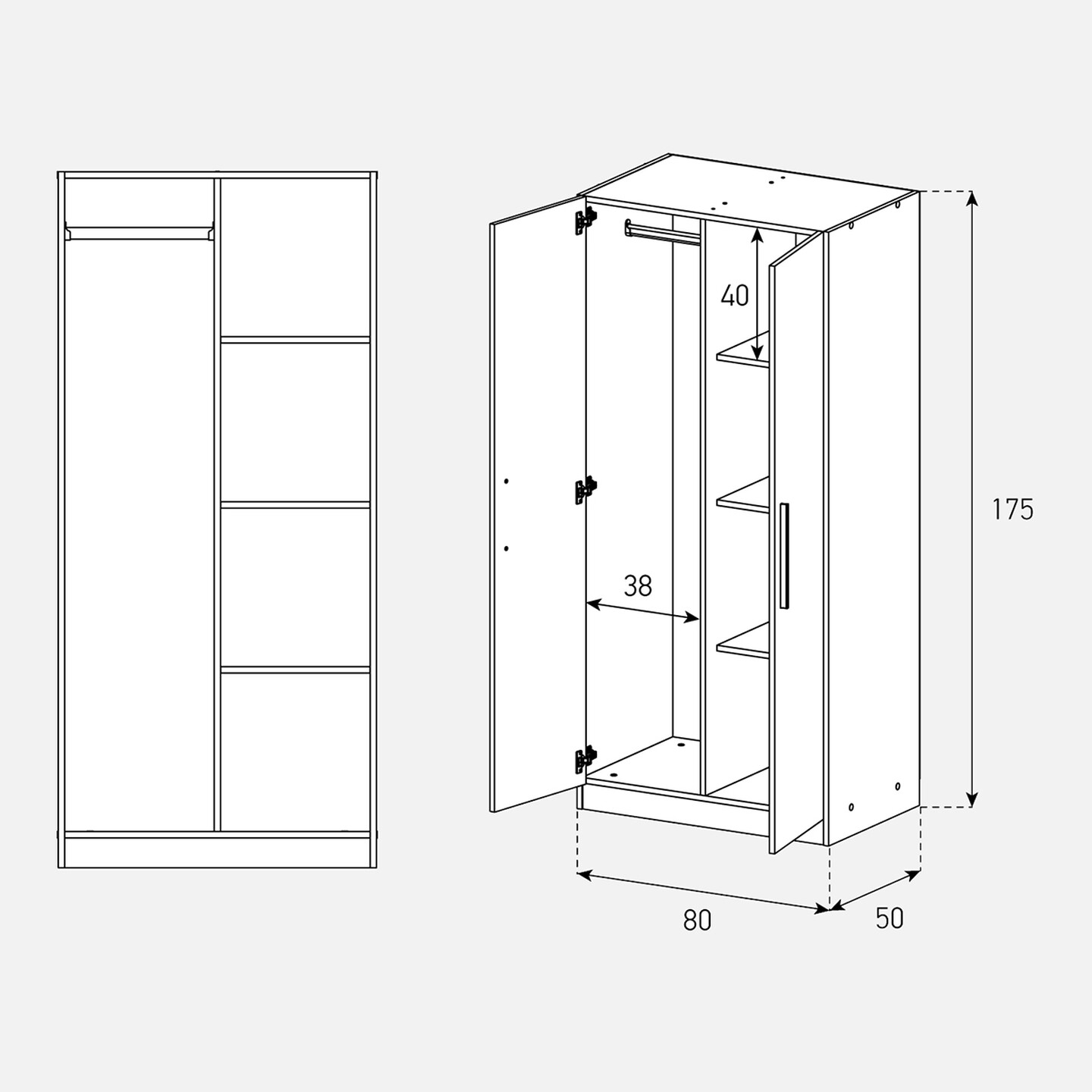 • Beyaz renk kasa, • Beyaz renk kapak, • Ürün ölçüleri: 50x80x175 cm,