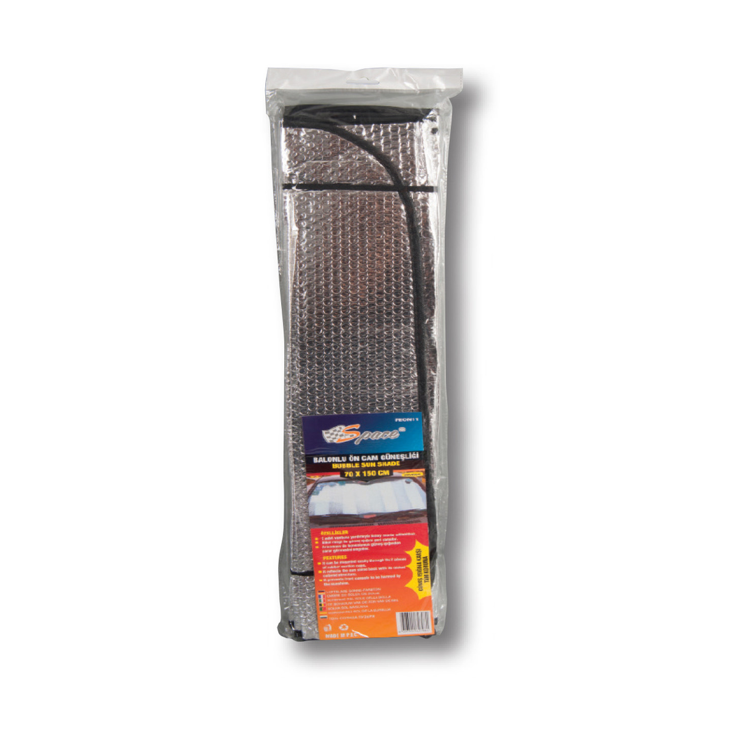 • Space Balonlu Ön Cam Perdesi Gümüş 70x140 cm, araçların ön camına yerleştirilen ve güneş ışınlarını engellemeye yarayan, gümüş renkli bir perde türüdür.