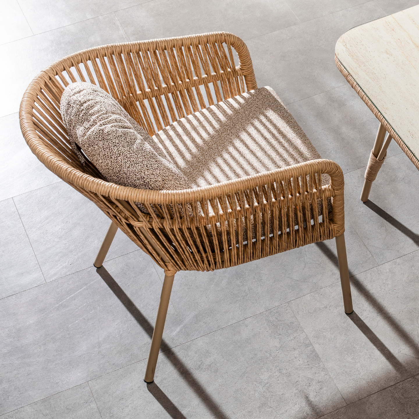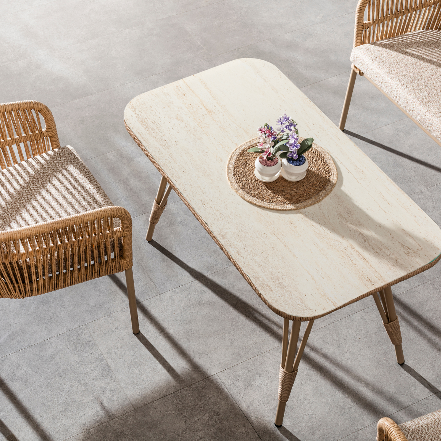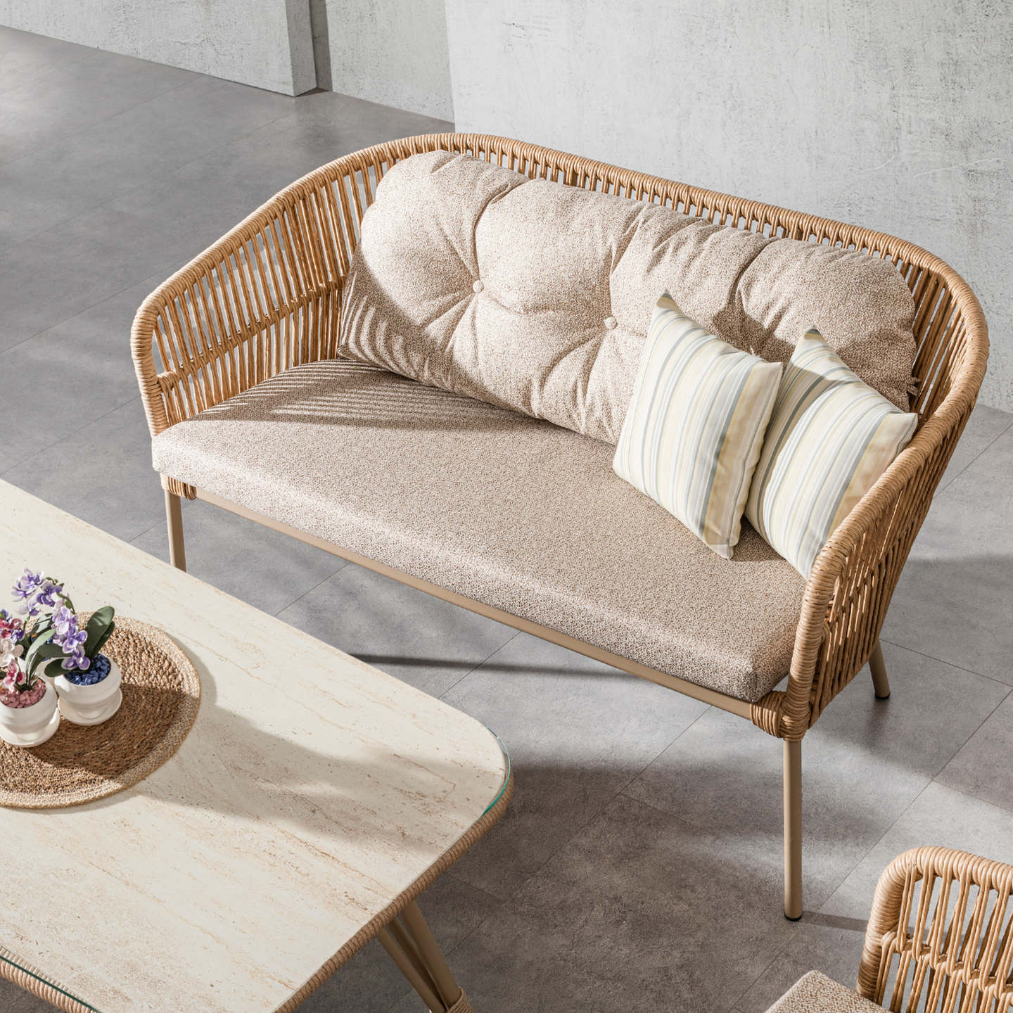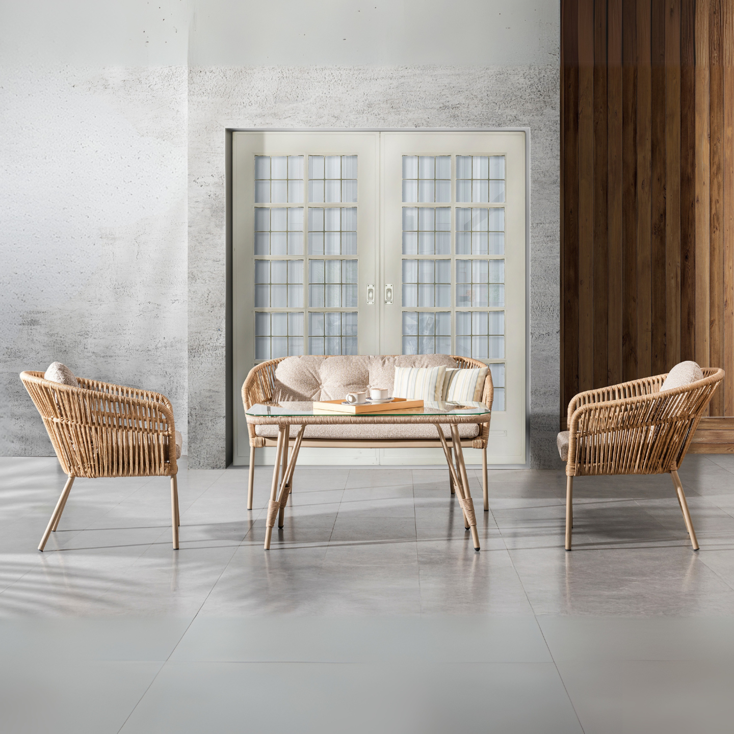 Malzeme: Alüminyum & Seramik Cam tabla & Rattan Örgü