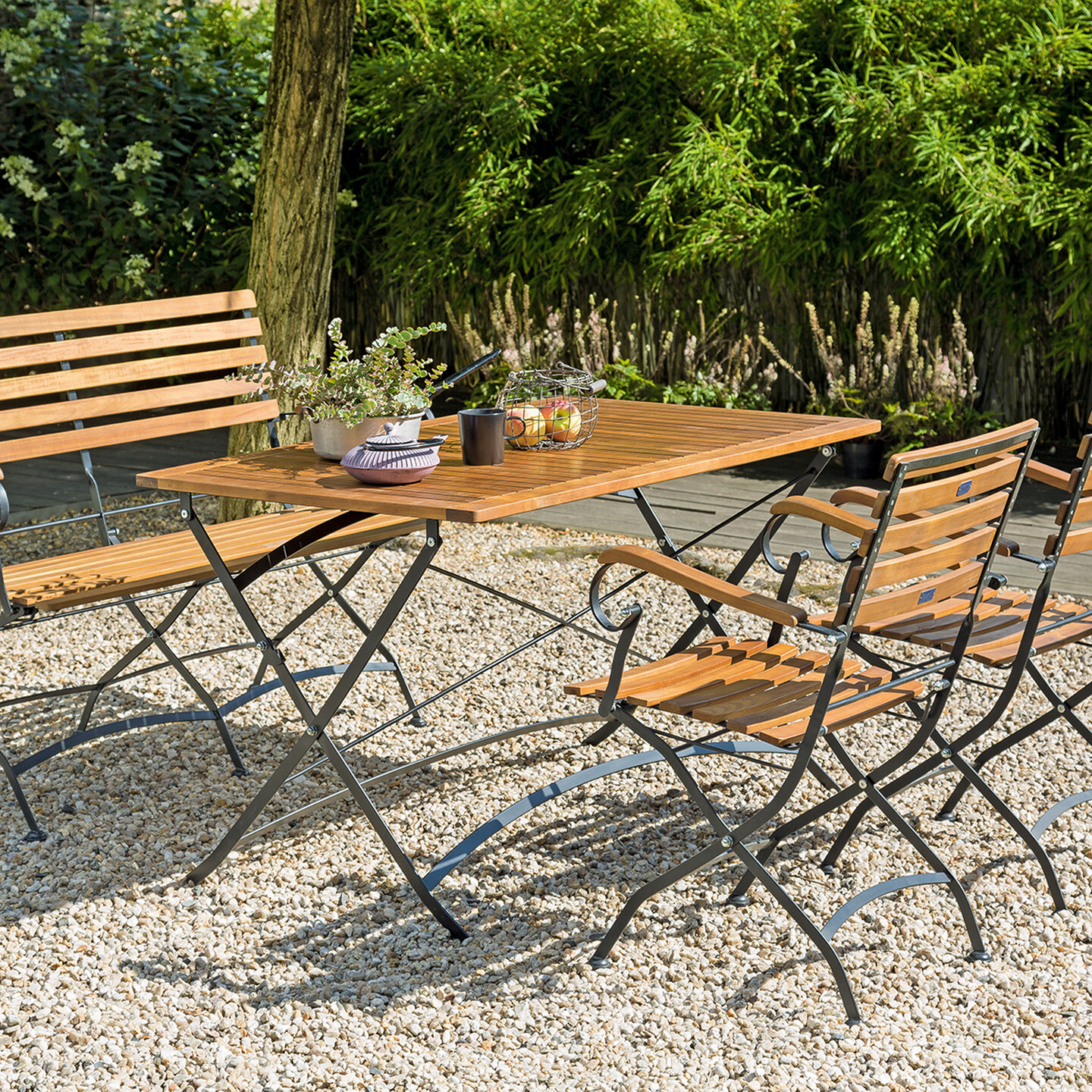 Zevkle kullanacağınız, bahçenizde ahşap ve ferforje şıklığını buluşturacak Sunfun Ferforje Ahşap Masa.