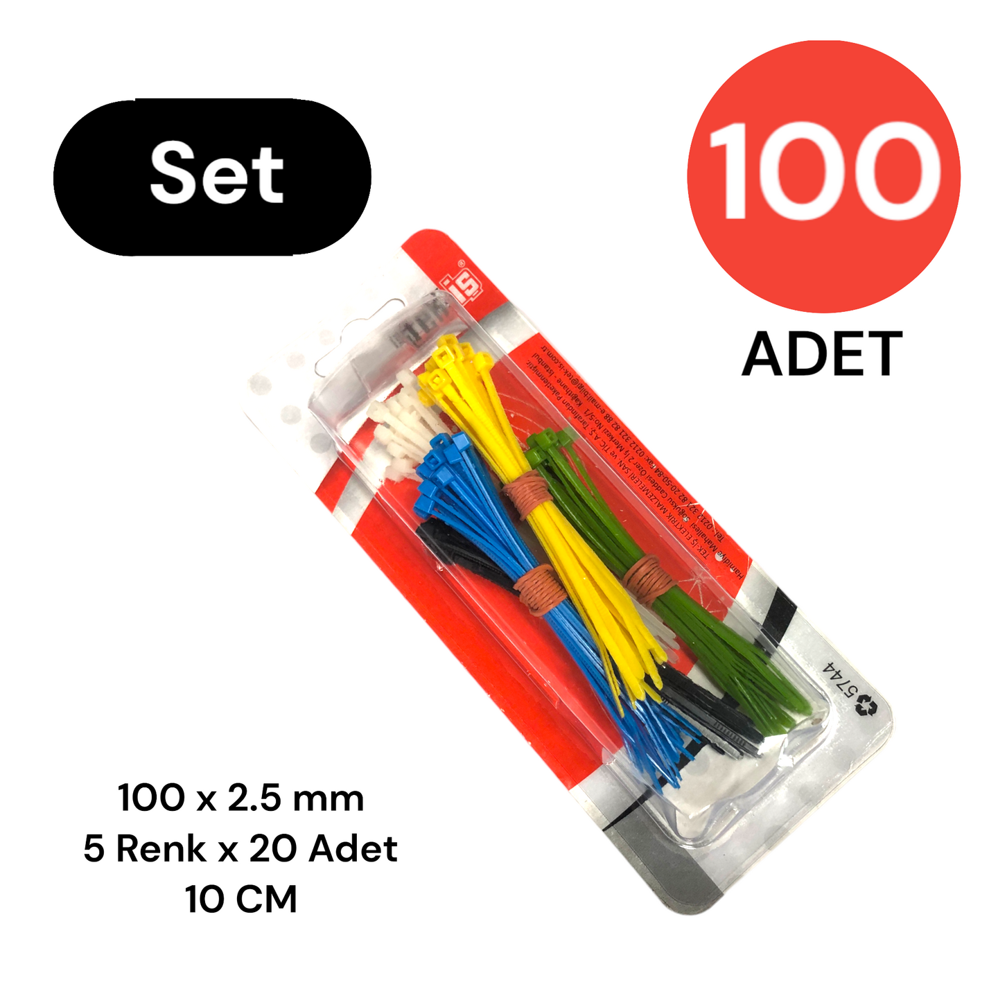 Tek-İş 5 Renk Kablo Bağı 100x2.5 mm 100 Adet