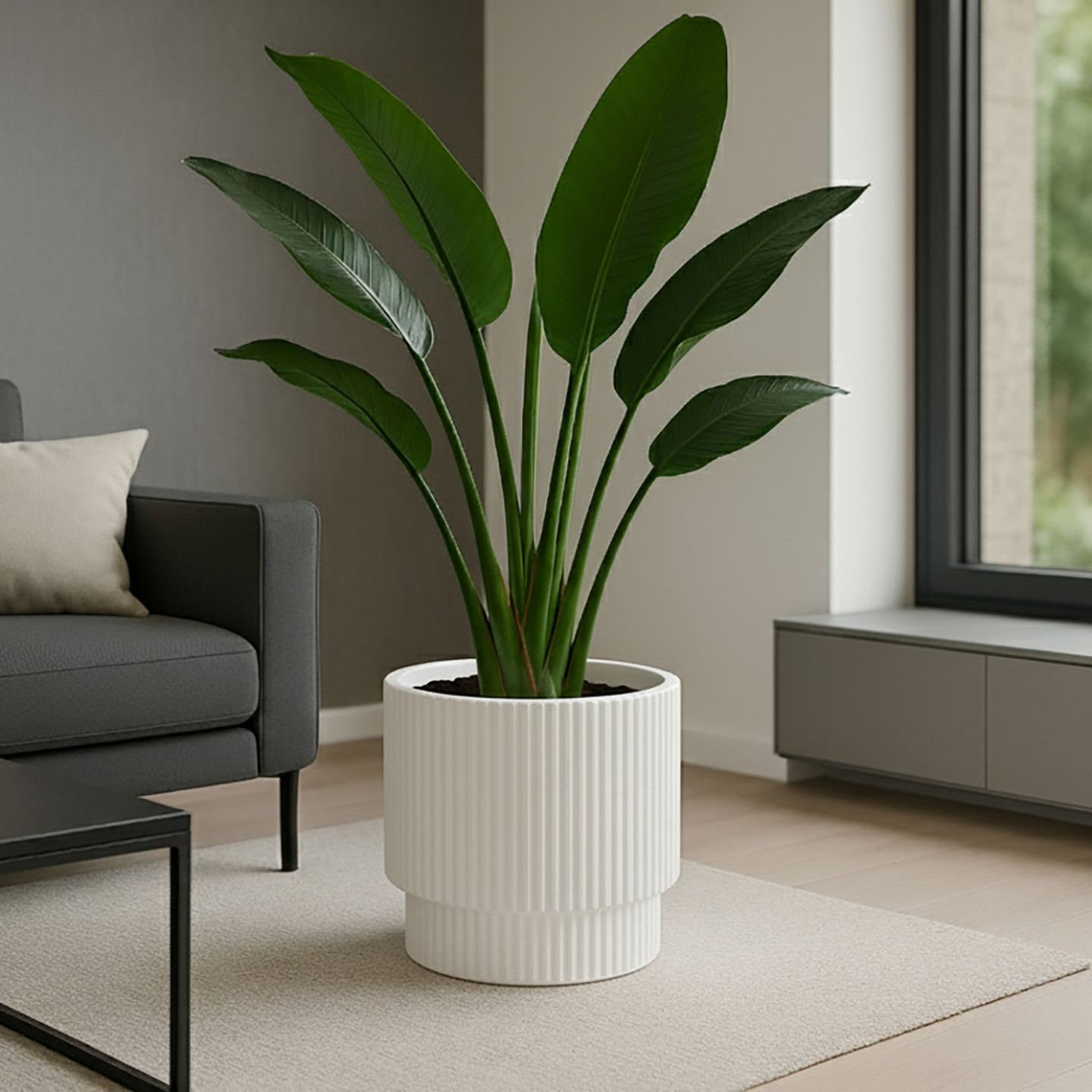Vega Model Büyük Dekoratif Modern Saksı & Vazo 27 Lt (Ø36,5 x H36,5 cm) – İç Hazneli