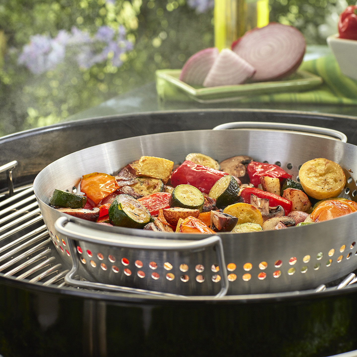 WEBER kömür ızgaraları, SMOKEFIRE EX4/EX6 ahşap pelet ızgaraları ve GENESIS/GENESIS II, SPIRIT ve SUMMIT gazlı ızgaralar için Gurme Barbekü Sistemi pişirme ızgaralarına uyar