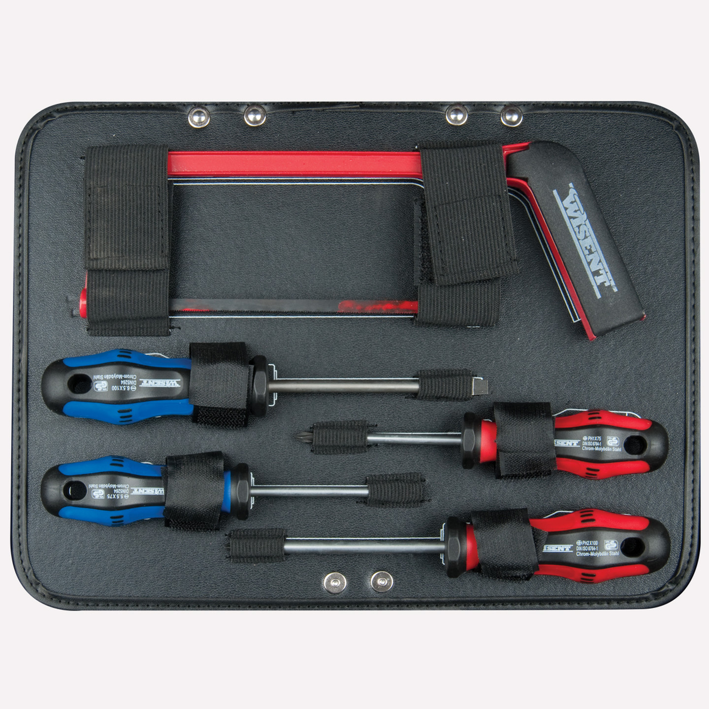 • Yüksek kaliteli bağlantı elemanlarına sahip sağlam alet çantası.