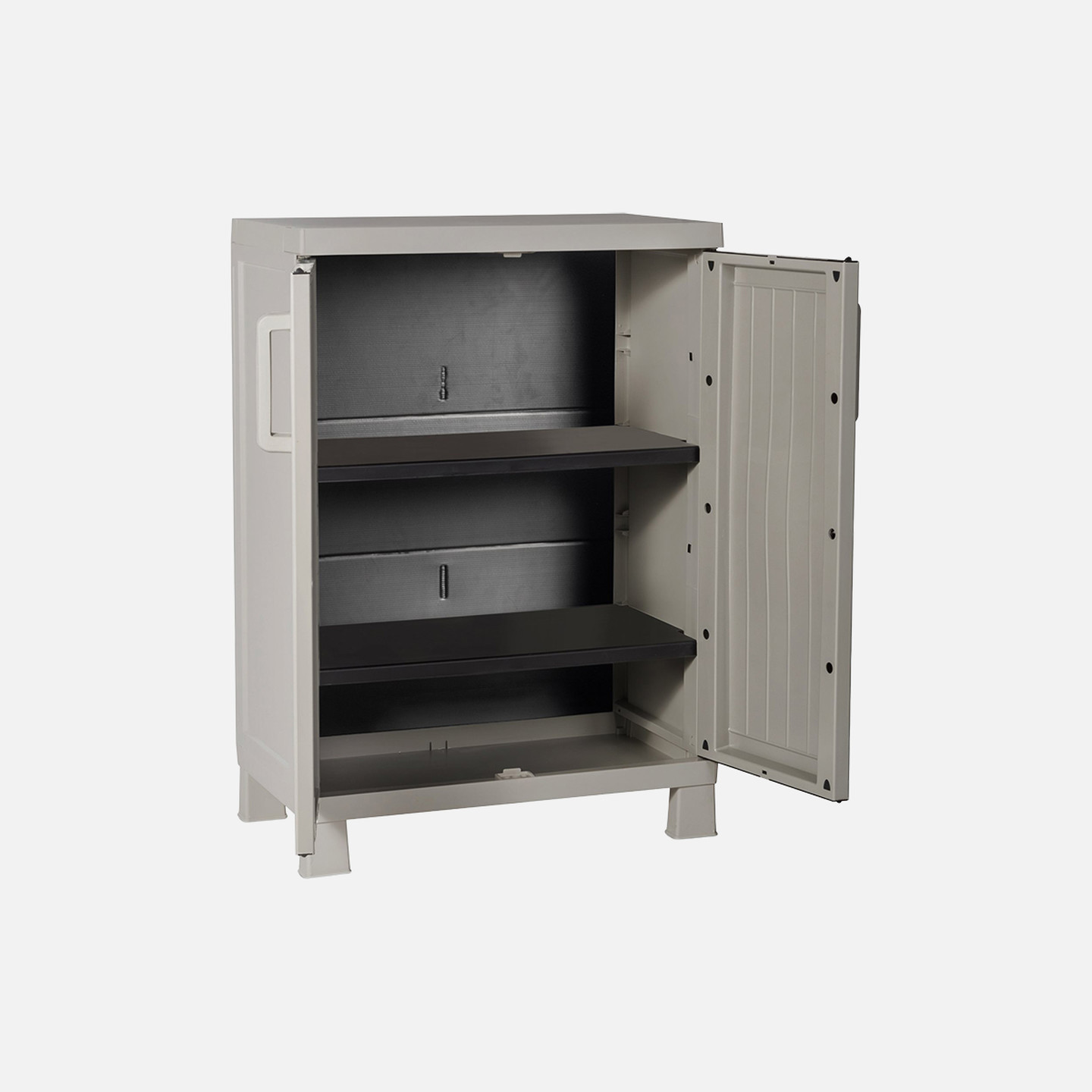 • Wood Midi 2 Raflı Plastik Dolap Taş Gri, evinizde ve garajınızda eşyalarınızı düzenli ve güvenli bir şekilde saklamanız için tasarlanmış pratik bir plastik depolama dolabıdır.