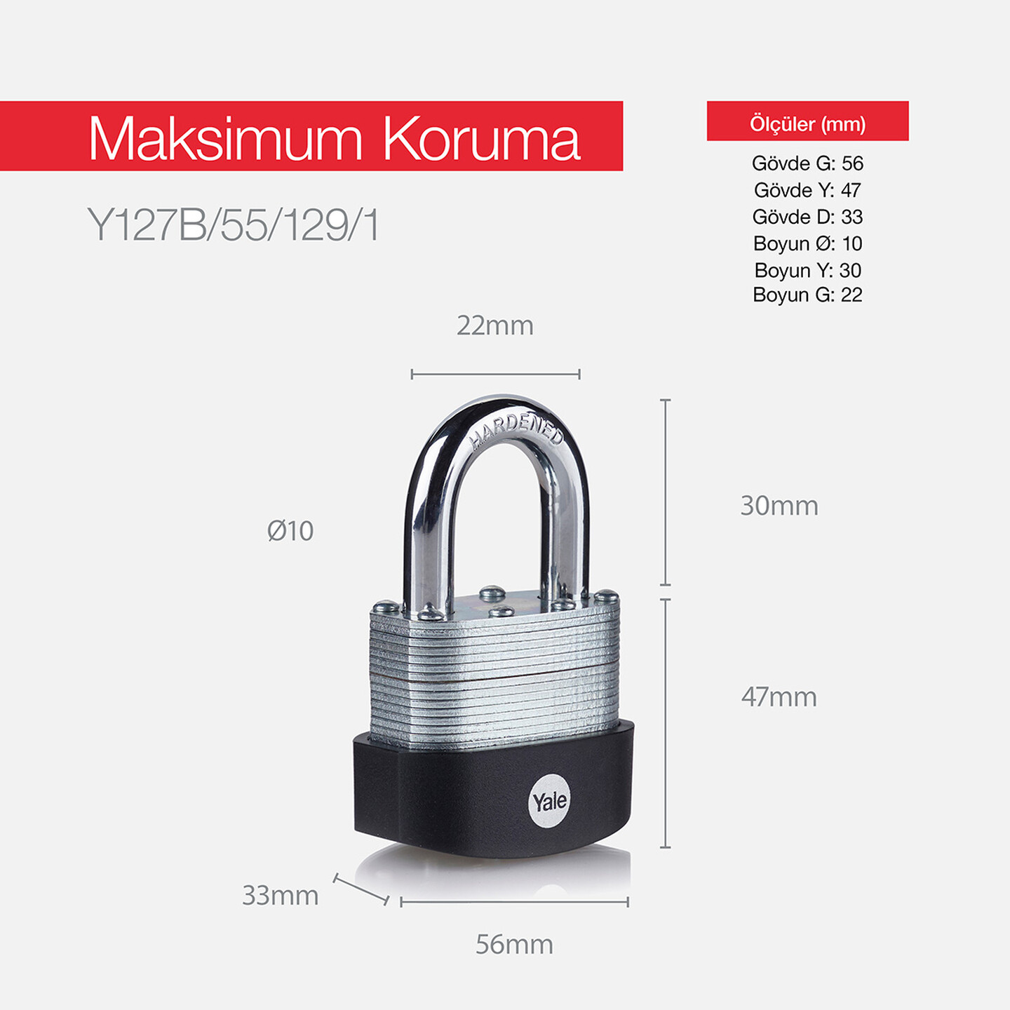 Yale 55 mm Protector Lamine Asma Kilit - Yarı Açık Blister