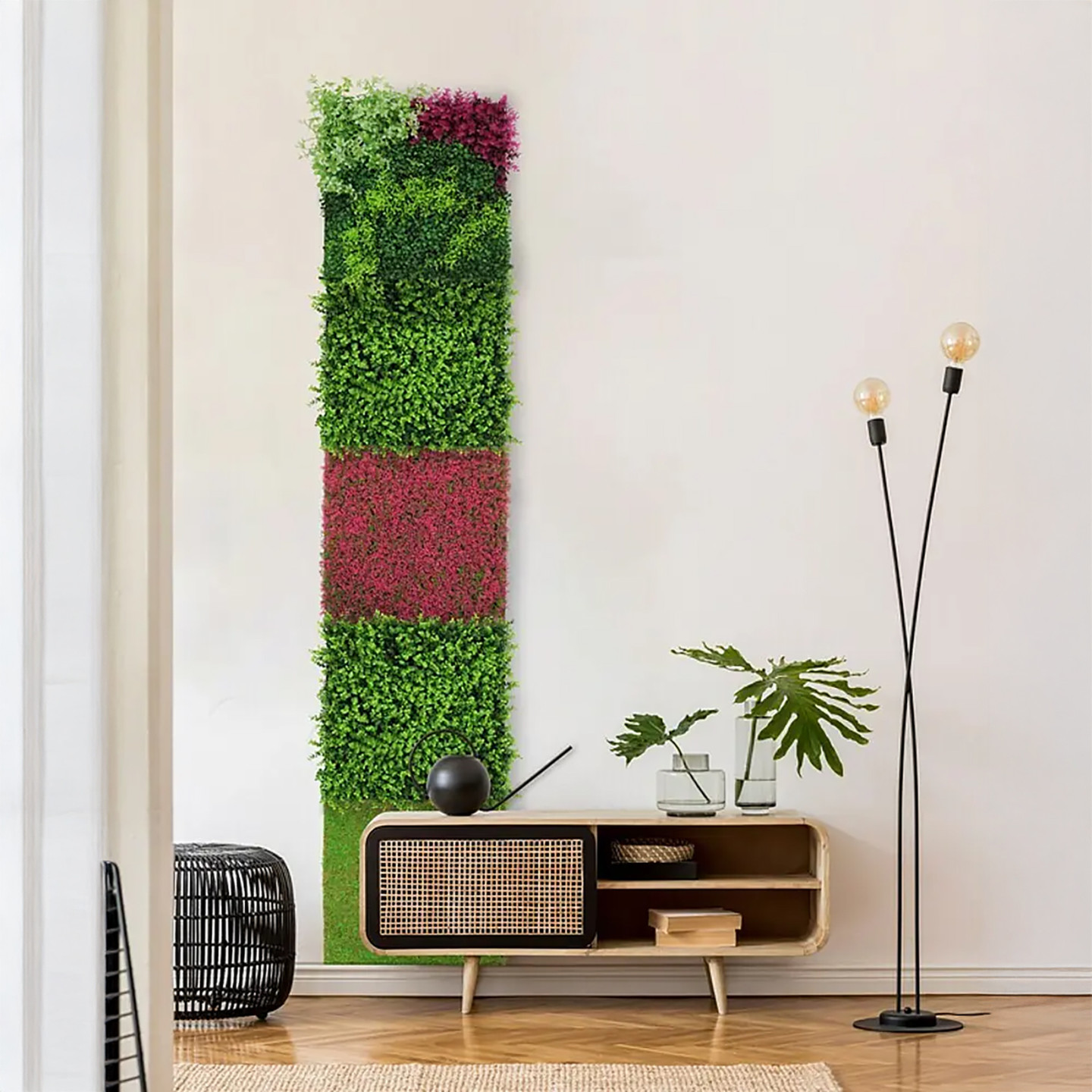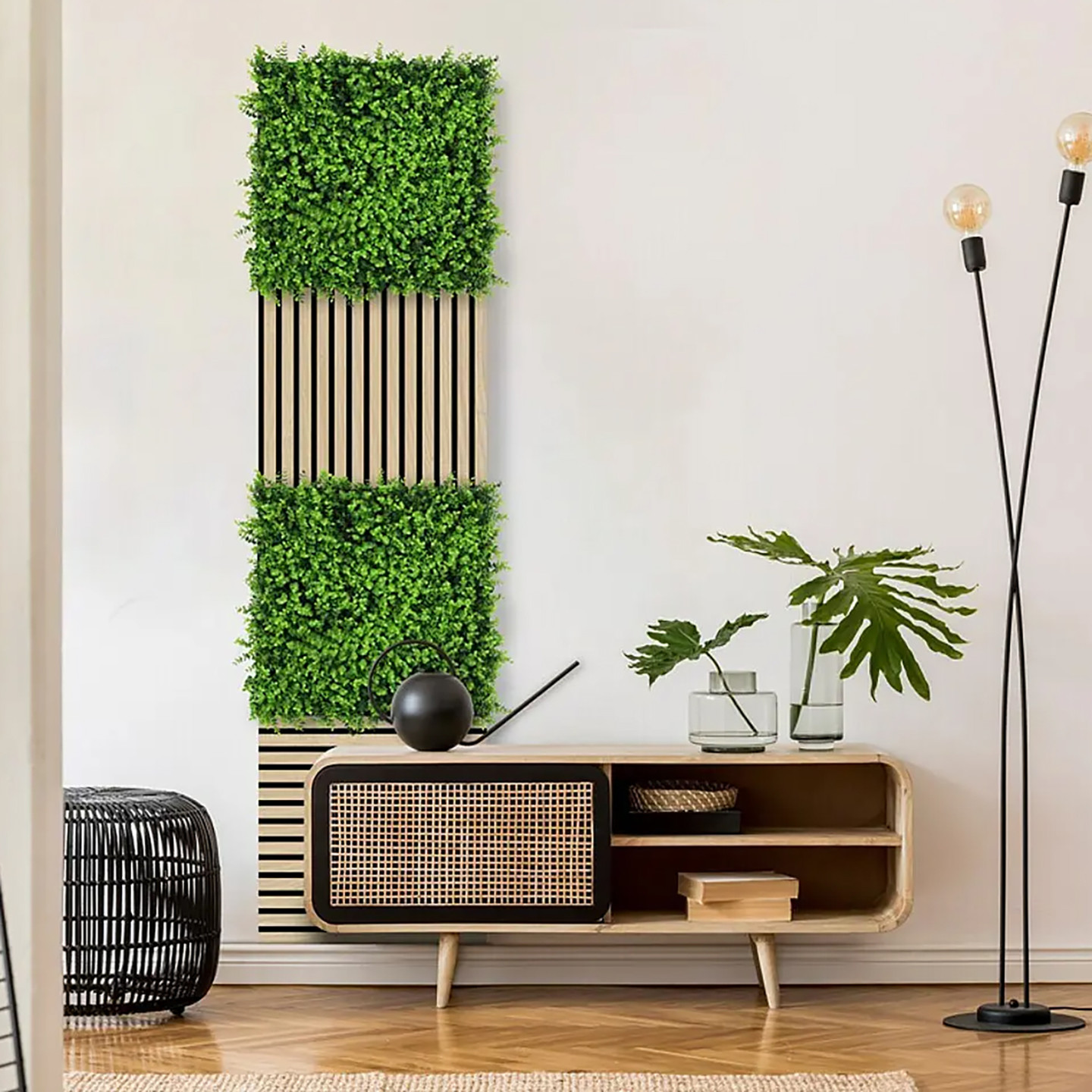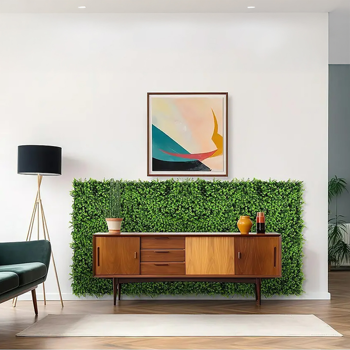 Yapay Bitki Kaplamalı Duvar Paneli Yeşil Çim, iç ve dış mekanlarda dekoratif ve doğal bir görünüm elde etmek için geliştirilmiş, hafif ve modüler bir duvar panelidir.
